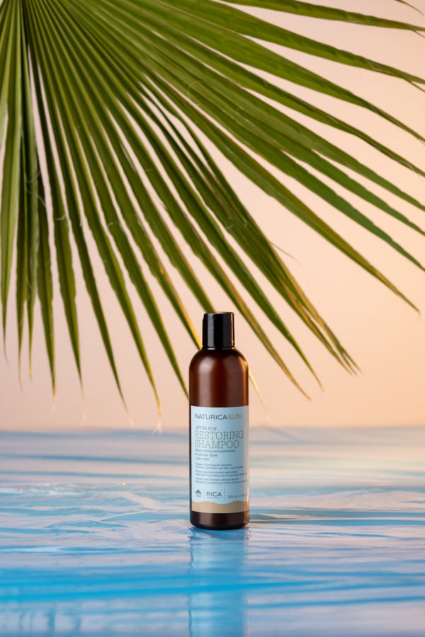 Champú reestructurante para después del sol con extracto de aceite de Opuntia. Realza el brillo, repara los daños causados por la exposición al sol y reduce el frizz.