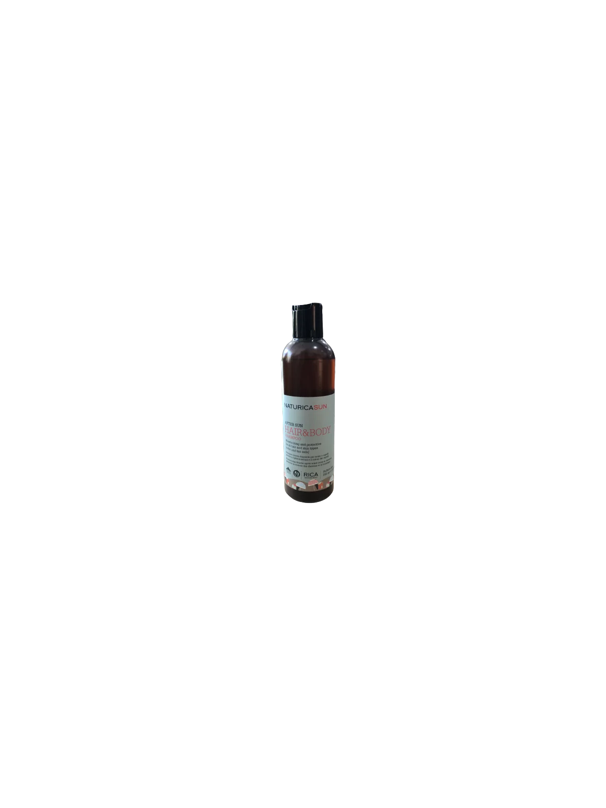 Uso: Aplicar sobre el cuerpo y el cabello mojados, después de la exposición al sol. Masajear suavemente y aclarar con abundante agua. Repetir si considera necesario.
